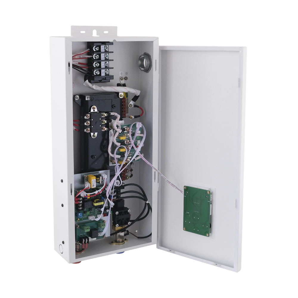 Оснащений функціями захисту від сухого нагріву та замерзання. Сенсорний дисплей дозволяє легко налаштувати котел під потреби користувача.