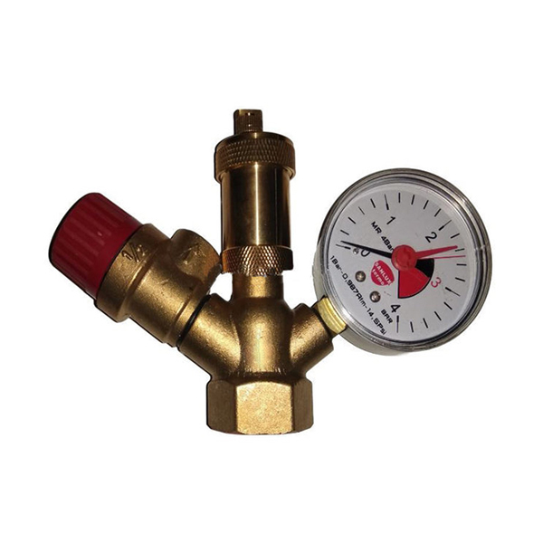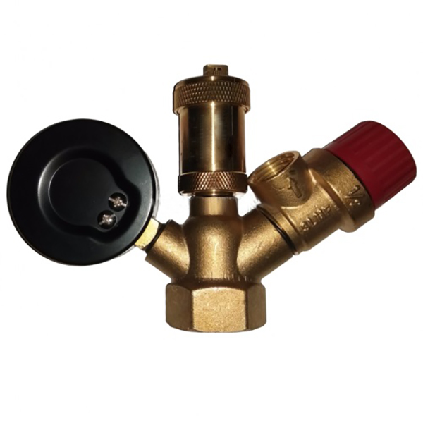 Група безпеки встановлюється на підлогових котлах для контролю за тиском в системі і для скидання зайвого повітря. Відведення повітря скидає зайве повітря в автоматичному режимі. Будь ласка, закрийте чорну кришку повітровідвідника після пусконалагодження котла. Група безпеки також містить запобіжний клапан, який зливає воду, якщо тиск перевищує значення 3 бар, захищаючи, таким чином, компоненти системи від підвищеного тиску.