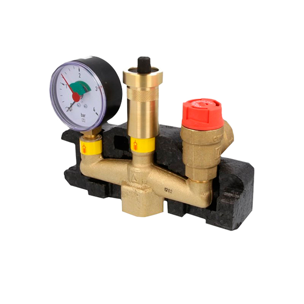 Групи безпеки котлів призначені для захисту закритих систем опалення від гідравлічних перевантажень і завоздушіванія. Монтуються в вертикальному положенні на трубопроводі, що подає після котла. Між котлом і групою безпеки не повинно бути запірної арматури. Сфера застосування: для закритих опалювальних систем потужністю до 50 кВт.