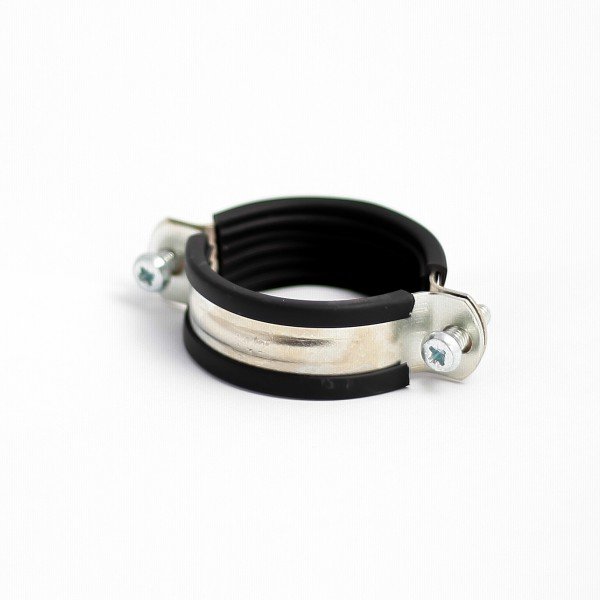 Хомут для фіксації труб до різних поверхонь (горизонтальна / вертикальна). Замковий механізм складається з 2-х затискних елементів, які стягуються гвинтами.