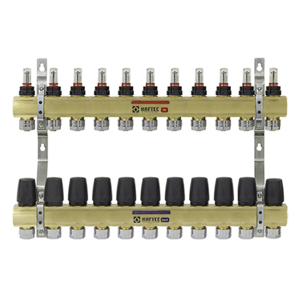 Колектор призначений для розподілу потоку теплоносія систем водяного опалення до окремого (споживачам) нагрівального приладу або групі приладів, контуру теплої підлоги, окремої гілки системи опалення. Перевагою використання колектора є компактність, а можливість регулювання дозволяє уникнути перепадів тиску між споживачами. Колектор виготовлений з латуні. На виходах прямого колектора встановлені настроювальні клапани з витратомірами, зворотний колектор оснащений термостатичними клапанами (ручні, з можливістю обладнання сервоприводами). Поєднання всіх елементів блоку між собою виконано на гумових ущільнювальних кільцях, що дозволяє відмовитися від використання додаткових ущільнювачів. У блоці використовується трубна циліндрична різьба класу 'А', що відповідає стандартам (ISO228 / 2.ISO 7/2). Приєднання трубопроводів до виходів здійснюється за допомогою фітингів 3/4 'за стандартом« євроконус». Блок також укомплектованний заглушками і здвоєними кріпильними кронштейнами. Вся сантехніка має сертифікати якості та санітарно-гігієнічні висновки.
