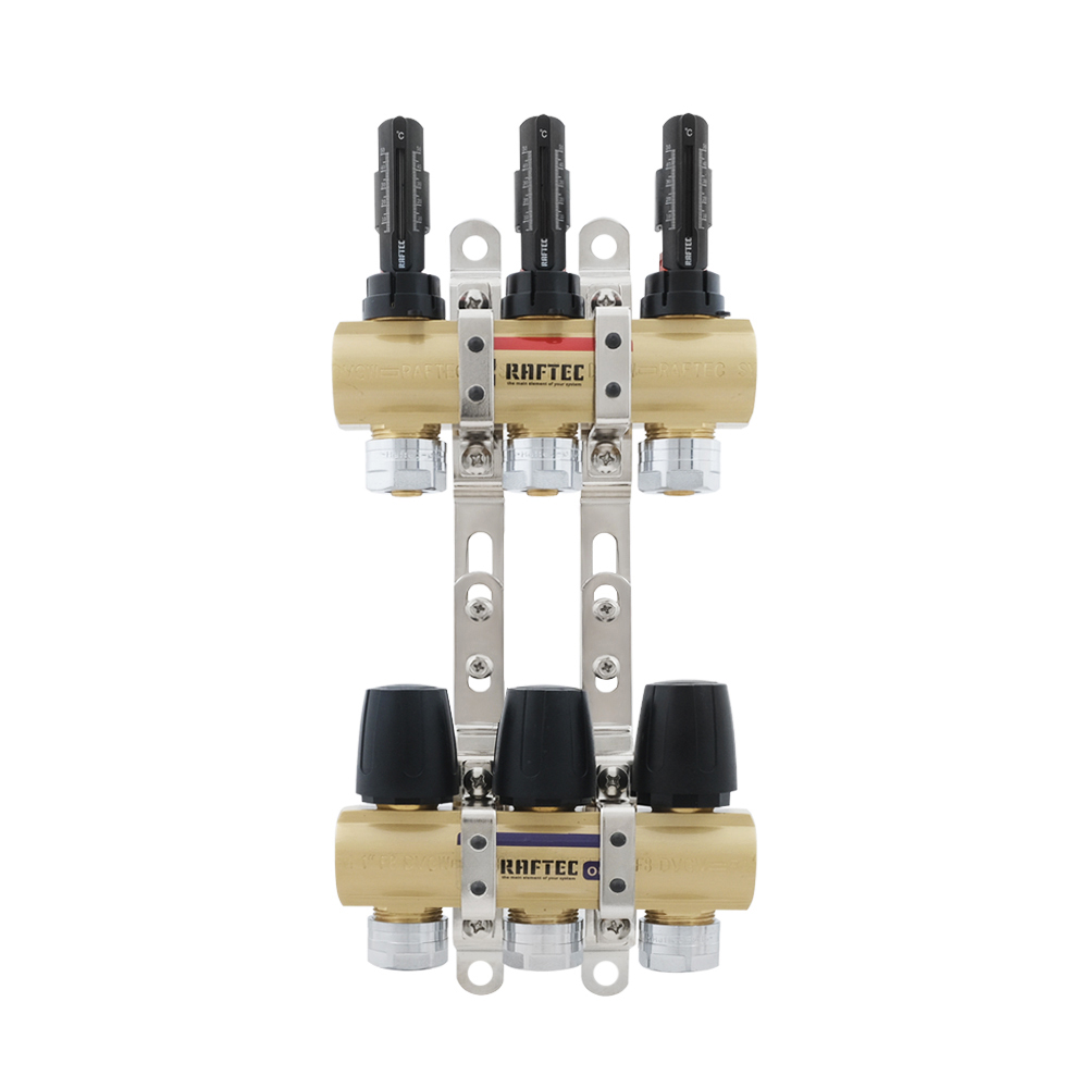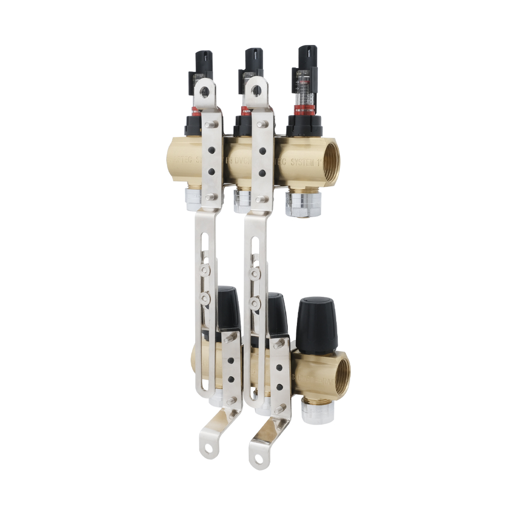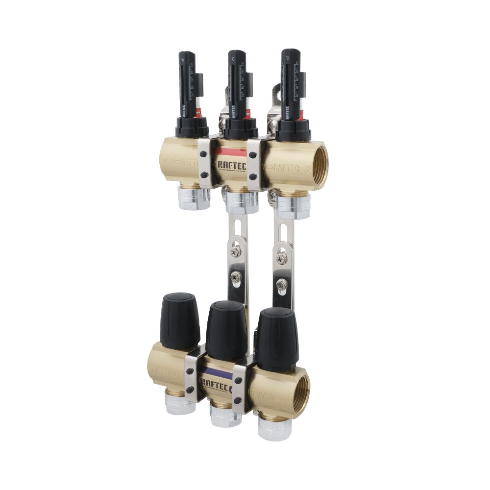 Колектор призначений для розподілу потоку теплоносія систем водяного опалення до окремого (споживачам) нагрівального приладу або групі приладів, контуру теплої підлоги, окремої гілки системи опалення. Перевагою використання колектора є компактність, а можливість регулювання дозволяє уникнути перепадів тиску між споживачами. Колектор виготовлений з латуні. На виходах прямого колектора встановлені настроювальні клапани з витратомірами, зворотний колектор оснащений термостатичними клапанами (ручні, з можливістю обладнання сервоприводами). Поєднання всіх елементів блоку між собою виконано на гумових ущільнювальних кільцях, що дозволяє відмовитися від використання додаткових ущільнювачів. У блоці використовується трубна циліндрична різьба класу 'А', що відповідає стандартам (ISO228 / 2.ISO 7/2). Приєднання трубопроводів до виходів здійснюється за допомогою фітингів 3/4 'за стандартом« євроконус». Блок також укомплектованний заглушками і здвоєними кріпильними кронштейнами. Вся сантехніка має сертифікати якості та санітарно-гігієнічні висновки.