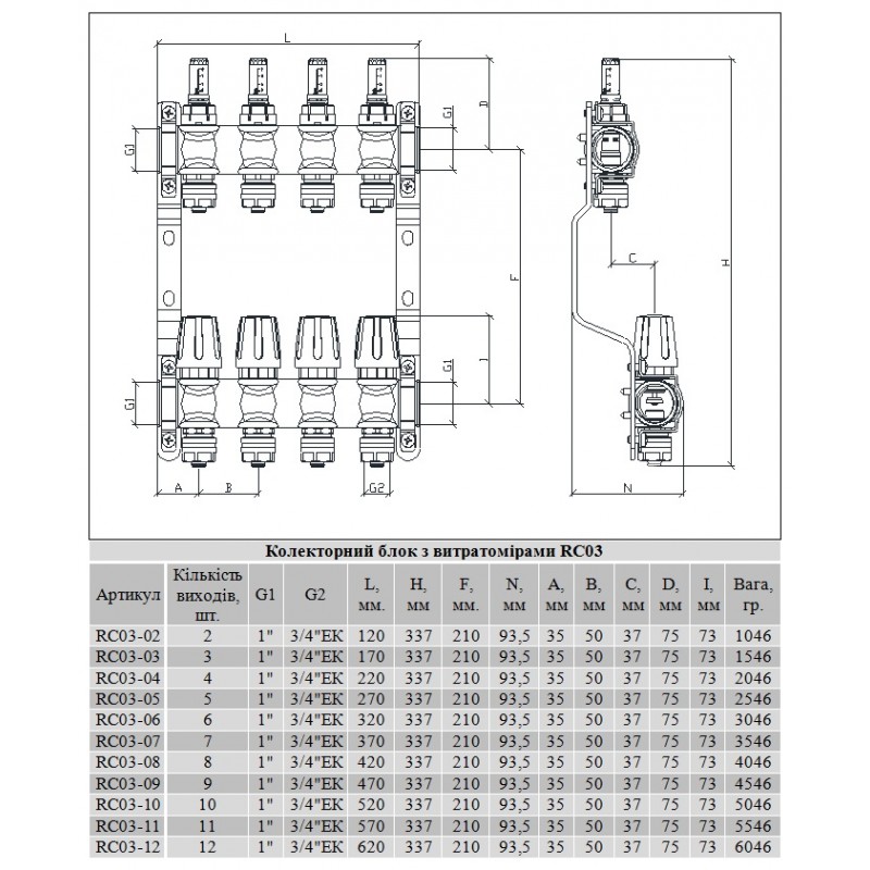 Колектор з витратомірами Raftec 1'х8