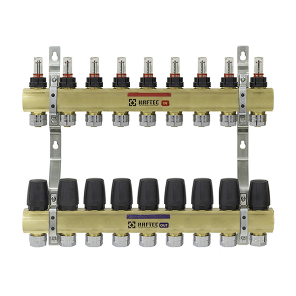 Колектор призначений для розподілу потоку теплоносія систем водяного опалення до окремого (споживачам) нагрівального приладу або групі приладів, контуру теплої підлоги, окремої гілки системи опалення. Перевагою використання колектора є компактність, а можливість регулювання дозволяє уникнути перепадів тиску між споживачами. Колектор виготовлений з латуні. На виходах прямого колектора встановлені настроювальні клапани з витратомірами, зворотний колектор оснащений термостатичними клапанами (ручні, з можливістю обладнання сервоприводами). Поєднання всіх елементів блоку між собою виконано на гумових ущільнювальних кільцях, що дозволяє відмовитися від використання додаткових ущільнювачів. У блоці використовується трубна циліндрична різьба класу 'А', що відповідає стандартам (ISO228 / 2.ISO 7/2). Приєднання трубопроводів до виходів здійснюється за допомогою фітингів 3/4 'за стандартом« євроконус». Блок також укомплектованний заглушками і здвоєними кріпильними кронштейнами. Вся сантехніка має сертифікати якості та санітарно-гігієнічні висновки.