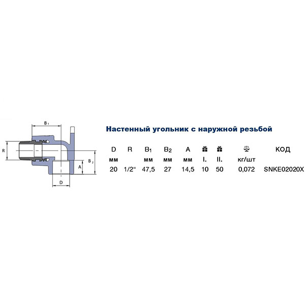 Коліно настінне PPR Ekoplastik 20мм ЗЗ 1/2' SNKE02020X