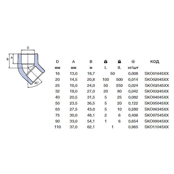 Коліно PPR Ekoplastik 45° 50мм SKO05045XX