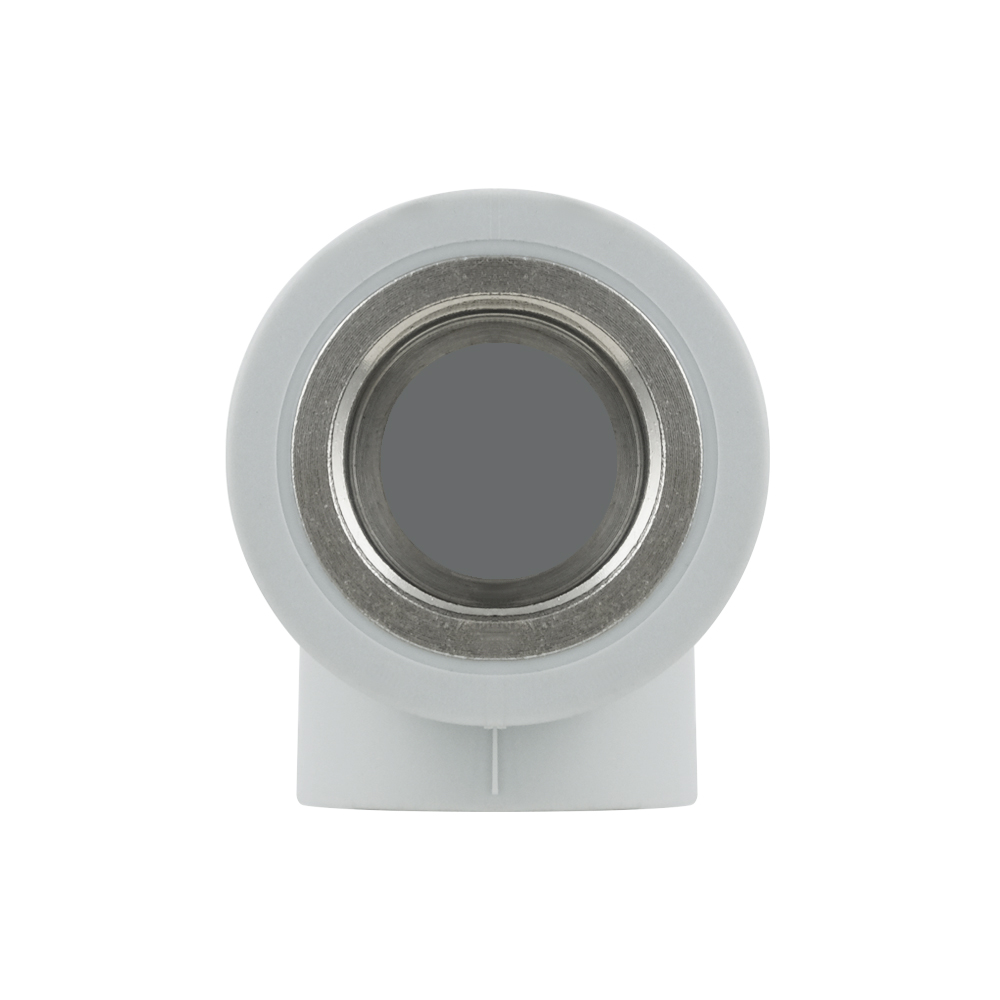 Кутовий поліпропіленовий фітинг для з’єднання поліпропіленової труби і фітинга інженерної системи з різбовим підключенням.