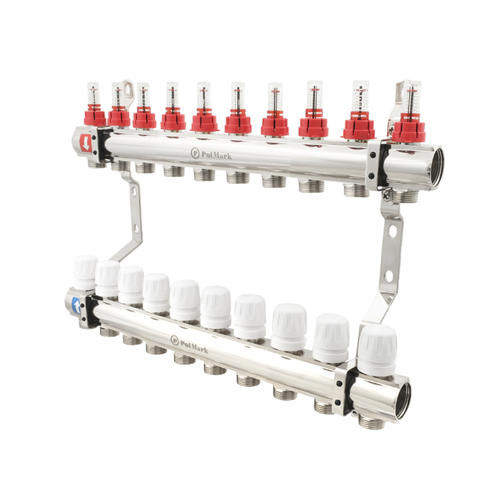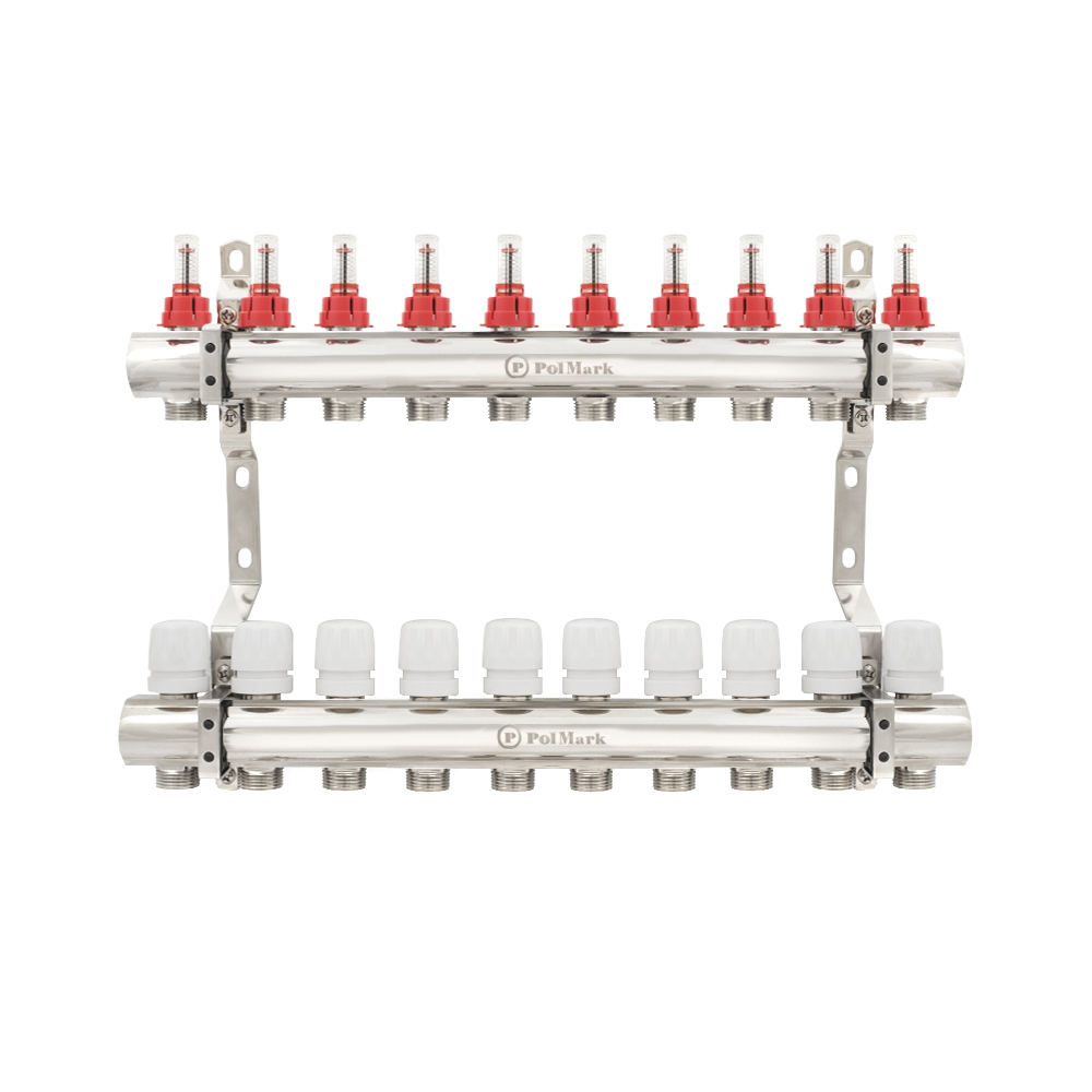 Коллектор PLM 1'x3/4' 10 выходов с термоклапанами и расходомерами PBMF110
