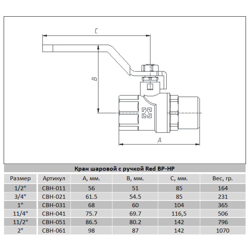 Кран кульовий Raftec RED PN40 ВЗ 2 ' CBH-061