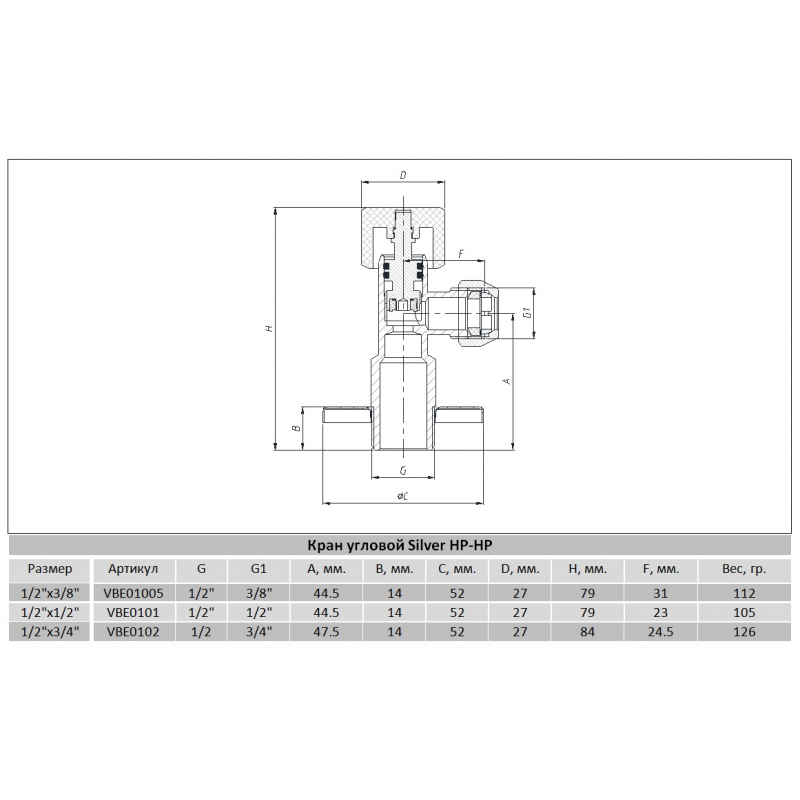 Кран кутовий з керамічним запірним елементом Raftec PN10 ЗЗ 1/2 'x1 / 2'