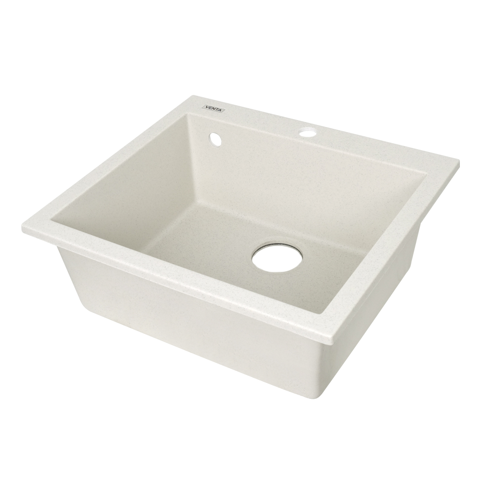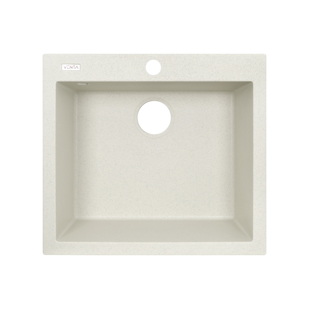 Кухонна мийка VENTA Stone 560х500х200 з якісного штучного каменю має матову поверхню та стильний дизайн. Вона оснащена чашею з отвором для зливу та переливу і монтується врізним способом у стільницю.