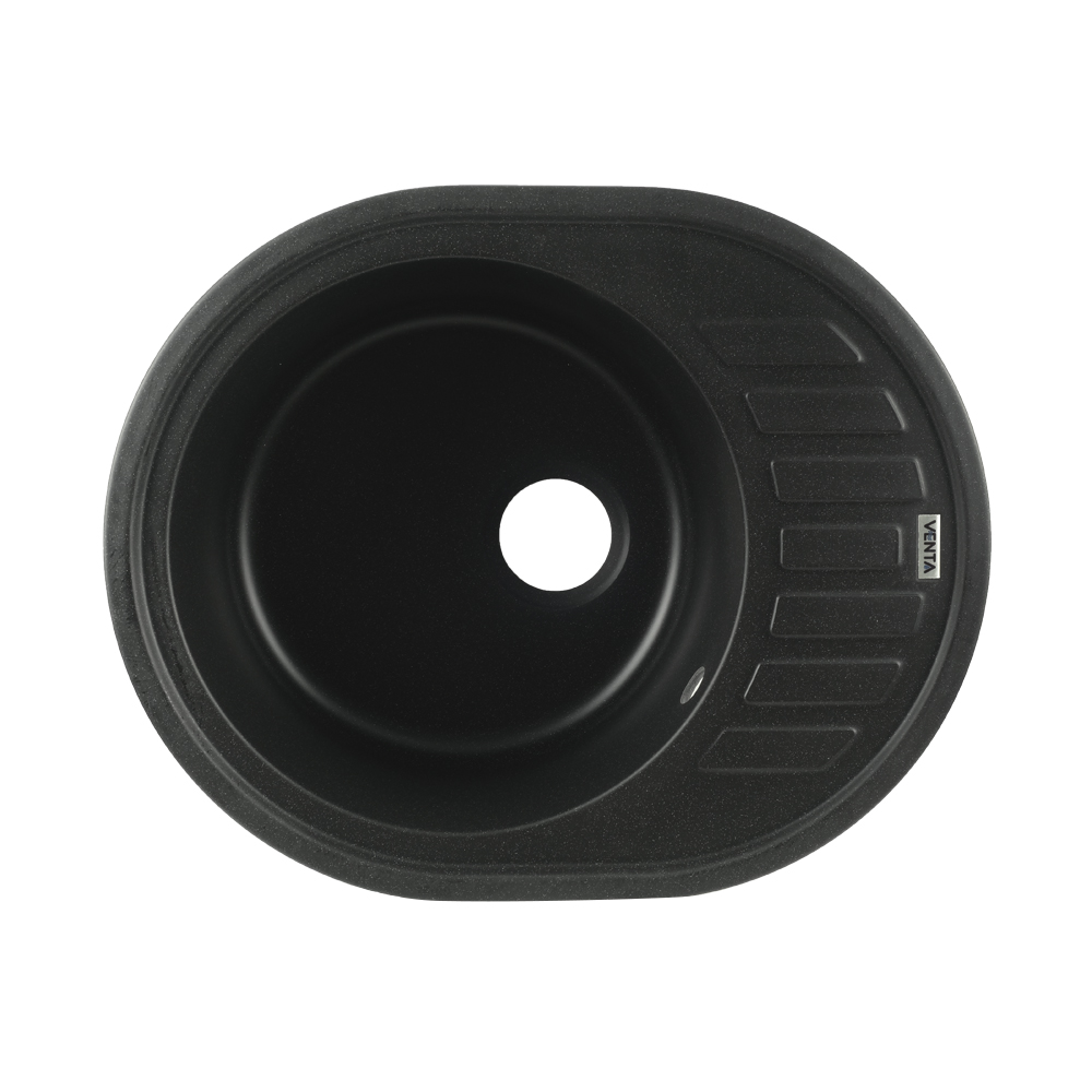 Кухонна мийка VENTA Stone VS505001 615х495х200 з якісного штучного каменю має чорну поверхню і відмінний дизайн. Вона оснащена прямокутною чашею з отвором для зливу та переливу, а також ребристим крилом для сушіння посуду. Мийка монтується врізним способом у стільницю.