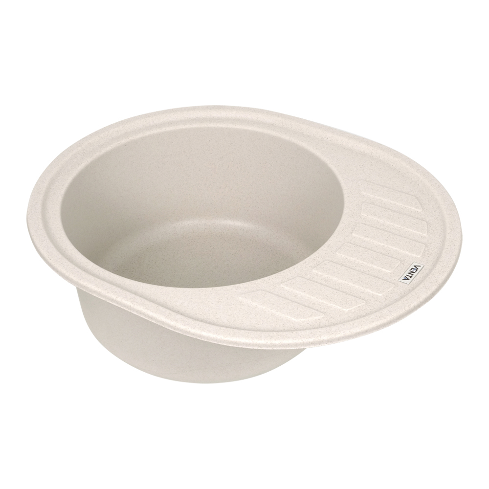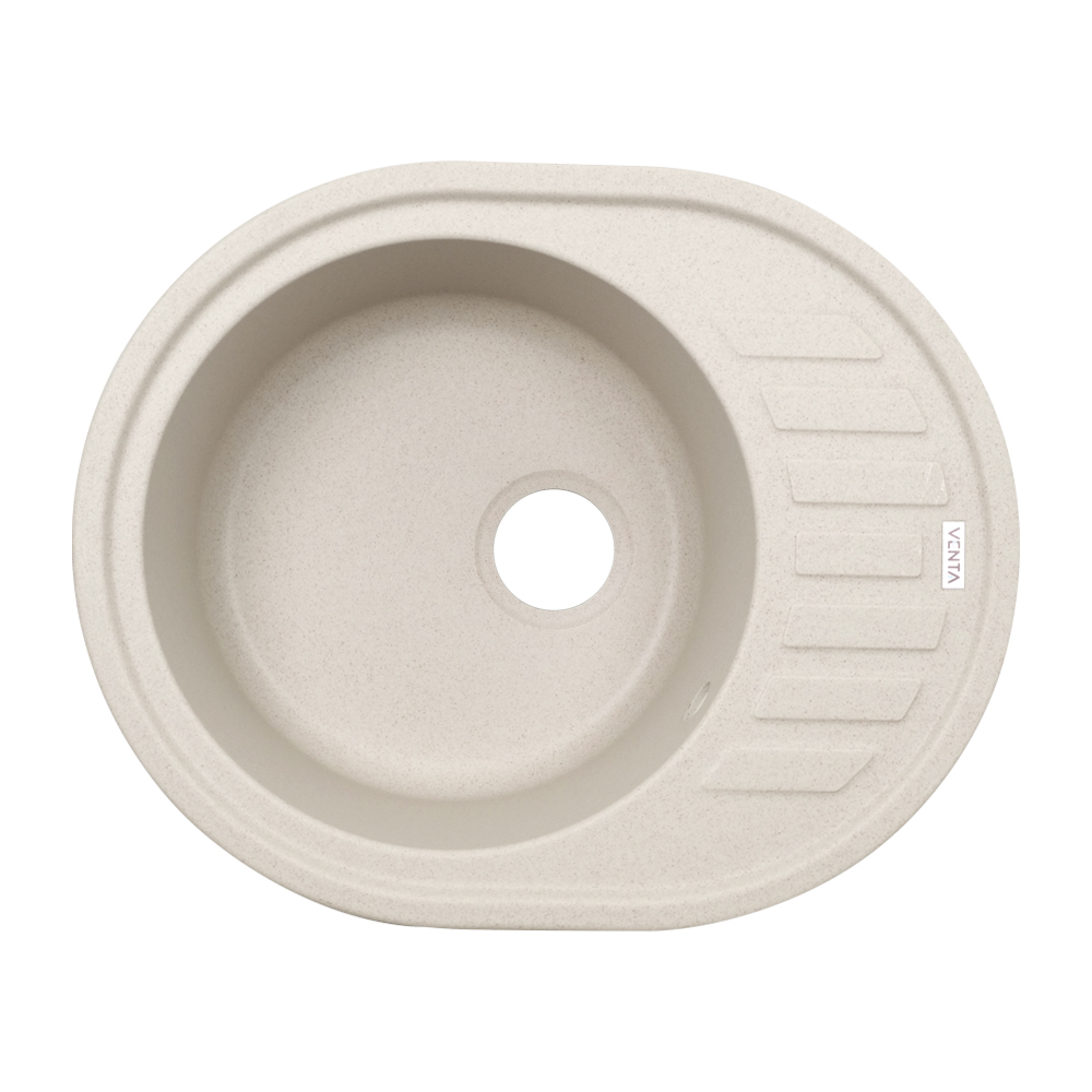 Кухонна мийка VENTA Stone VS505003 615х495х200 з якісного штучного каменю має поверхню у кольорі avena і відмінний дизайн. Вона оснащена прямокутною чашею з отвором для зливу та переливу, а також ребристим крилом для сушіння посуду. Мийка монтується врізним способом у стільницю.