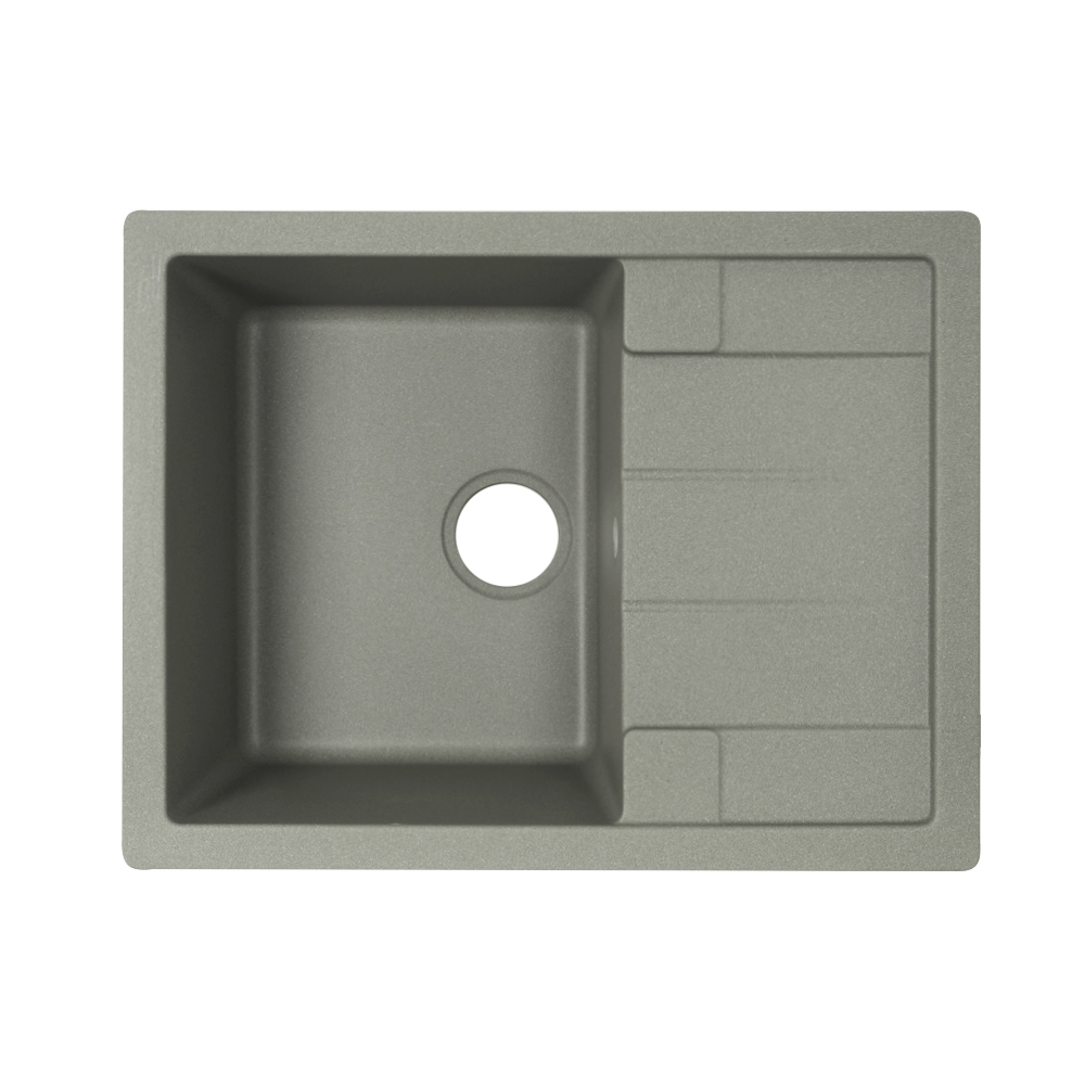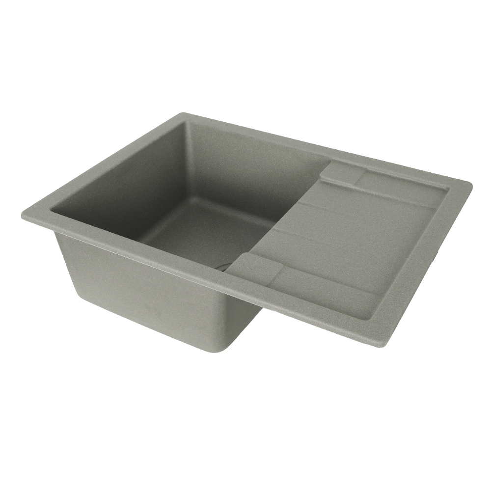 Кухонна мийка VENTA Stone VS501002 645х495х200 з якісного штучного каменю має сіру поверхню і відмінний дизайн. Вона оснащена прямокутною чашею з отвором для зливу та переливу, а також ребристим крилом для сушіння посуду. Мийка монтується врызним способом у стільницю.