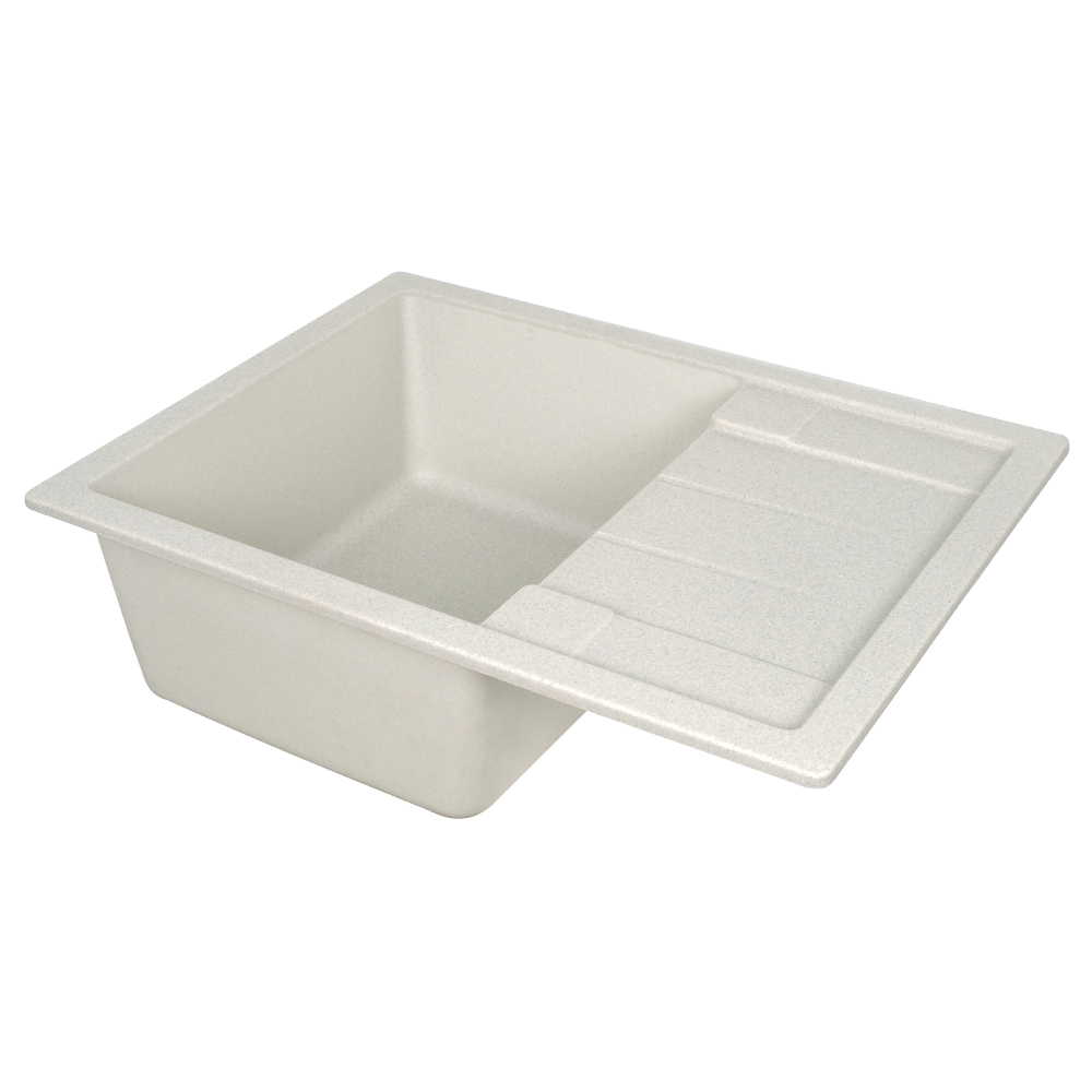 Кухонна мийка VENTA Stone VS501004 645х495х200 з якісного штучного каменю має світло-сіру поверхню і відмінний дизайн. Вона оснащена прямокутною чашею з отвором для зливу та переливу, а також ребристим крилом для сушіння посуду. Мийка монтується врызним способом у стільницю.