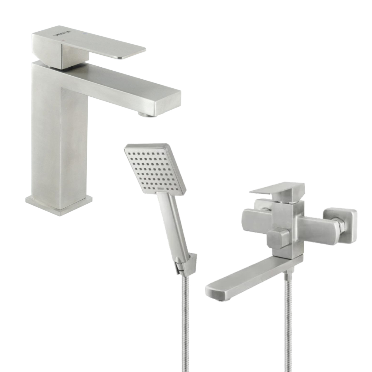 Набір змішувачів Venta 2 в 1 складається із змішувача для умивальника та змішувача для ванни. Набори VENTA - це вироби, що повністю виготовлені з високоякісної нержавіючої сталі, тому продукція після тривалої служби зберігає свій блиск. Країна виробник – Чехія. Уся сантехніка має сертифікати якості.
