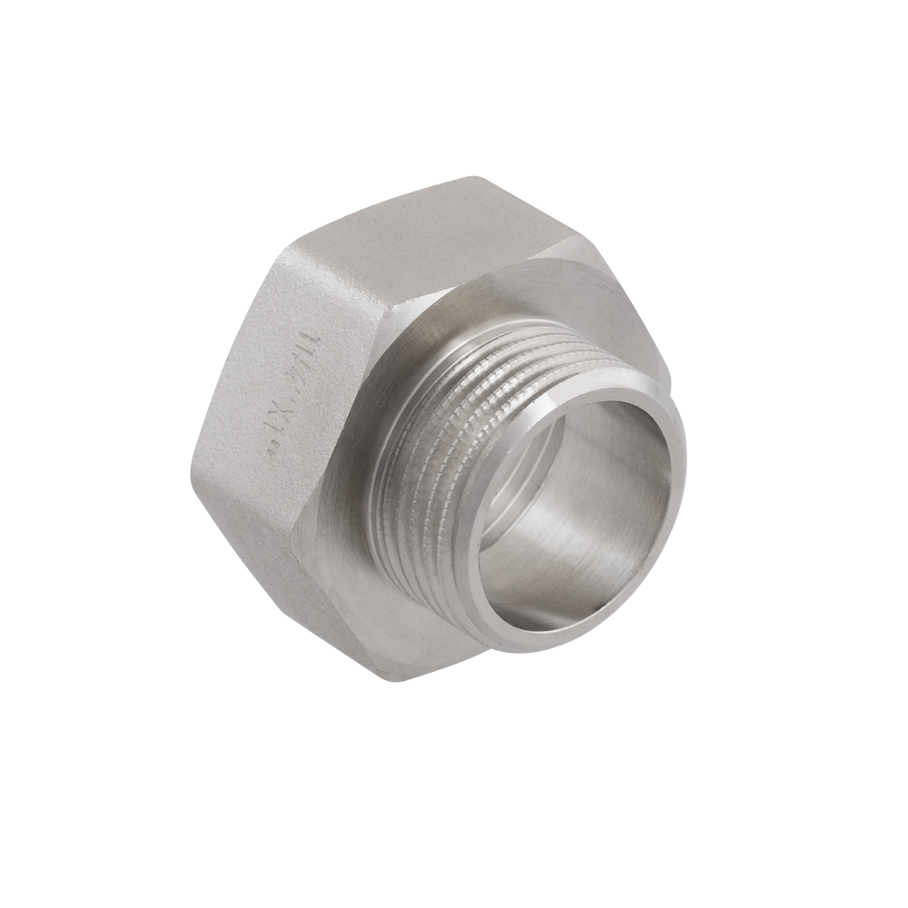 Різьбовий фітинг Raftec - латунний нікельований перехідник для з'єднання елементів трубопроводу різного діаметру. Різьба внутрішня з переходом на зовнішню, циліндрична трубна ISO 228, EN 10226. Корпус шестигранної форми, під гайковий ключ.