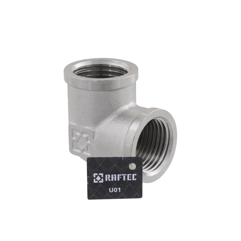 Резьбовой фитинг Raftec - угловой латунный никелированный фитинг для соединения элементов трубопровода.