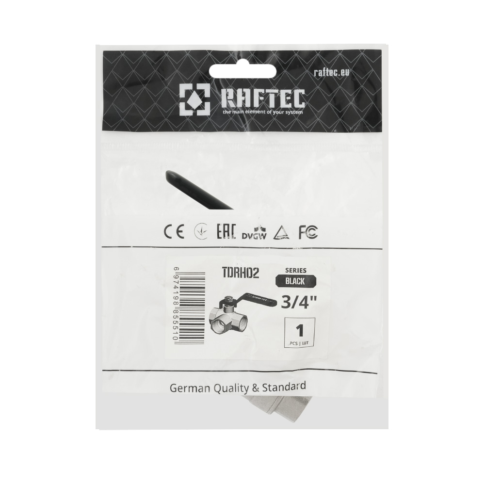 Кран шаровый трехходовой Raftec BLACK DN20 13/4' ВВ TDRH02