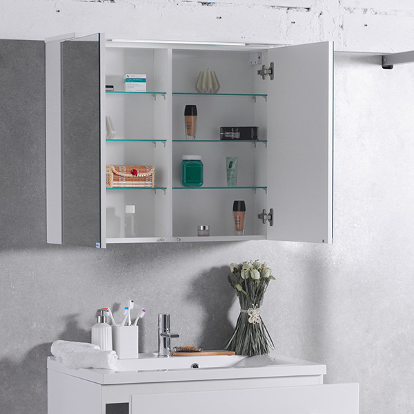 Зеркальный шкафчик Fancy Marble с диодной подсветкой MC-10 устанавливается над умывальником. Габаритные размеры (ШхВхГ): 800х270х700 мм.