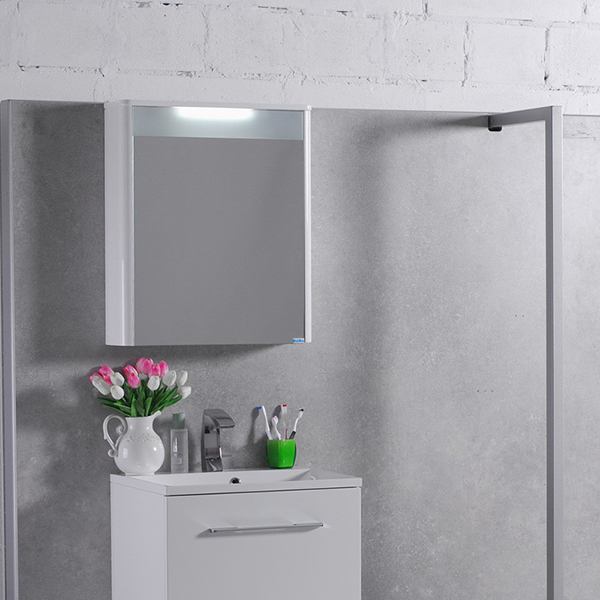Шкаф Fancy Marble MC-Santorini 600 состоит из одной распашной зеркальной двери, внутри две полки. Оборудован LED подсветкой. Корпус и фасад произведен из влагостойкого материала - ДСП. Цвет белый.