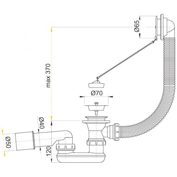 Пластиковый сифон для ванн со сливом-переливом изготовлен из высококачественного полипропилена.