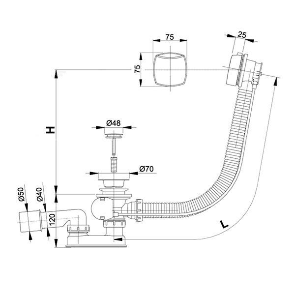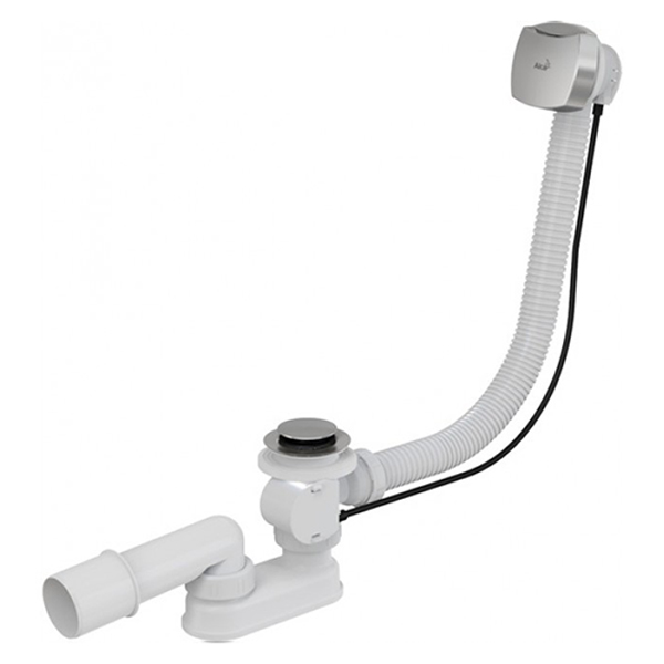 Пластиковый сифон автомат для ванн со сливом-переливом изготовлен из высококачественного полипропилена. Поворотная головка - пластик, управляет открытием и закрытием выпуска сифона с помощью тягового троса. Пробка изготовлена из металлического сплава с хромированным покрытием.
