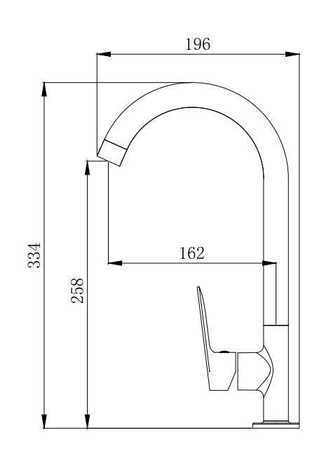 - Высота смесителя 334 мм - идеальна для высоких моек