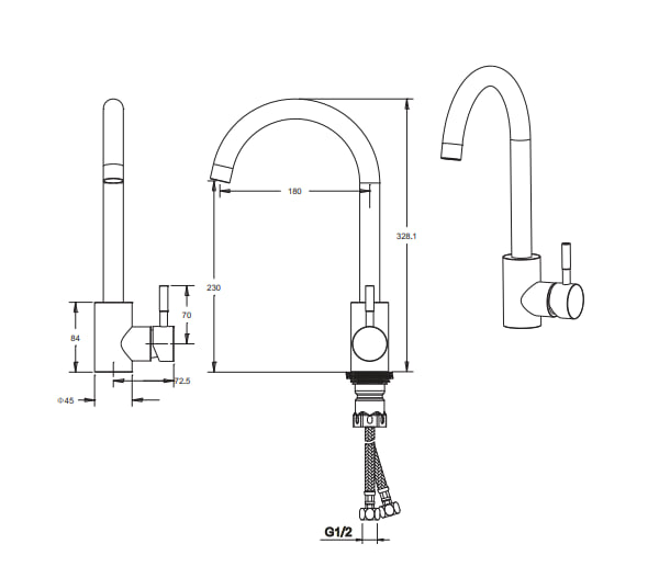 U-образный изогнутый излив имеет идеальную длину 180 мм — достаточно, чтобы справиться с ежедневным объемом посуды, включая большие кастрюли.