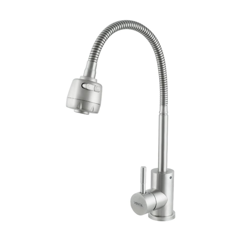 Смеситель для кухни VENTA VS422SS — модель в классическом цвете нержавеющей стали, гармонично вписывается в любой интерьер кухни. Продуман до мелочей и обеспечивает комфорт даже при интенсивном использовании.