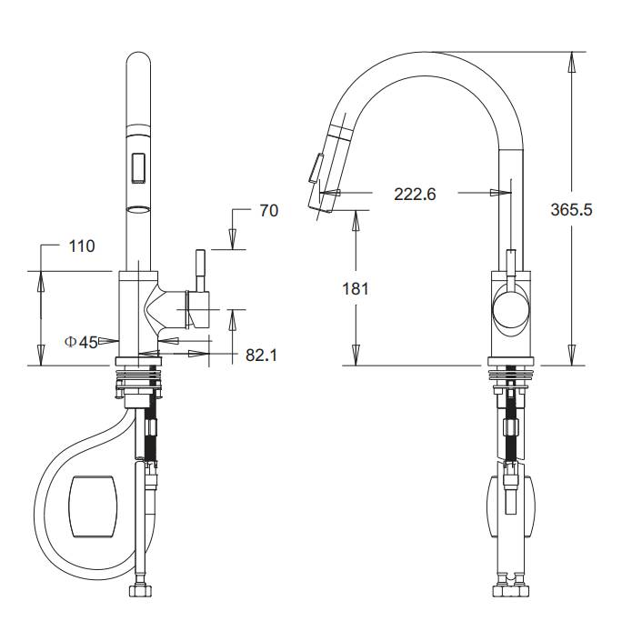 - Оптимальная длина излива 222,6 мм — для глубоких и двойных моек