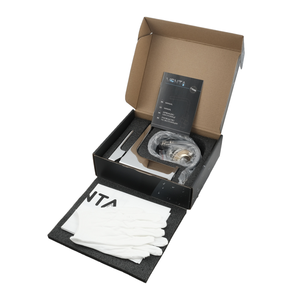 Смеситель для умывальника VENTA BS145MC воплощает идею четкой формы и упорядоченного дизайна. Его корпус, излив и рычаг образуют единый визуальный ансамбль на основе прямоугольной геометрии. Благодаря глянцевому хромированному покрытию — добавляет блеска интерьеру ванной комнаты. Он создан для тех, кто выбирает лаконичный минимализм, но не пренебрегает качеством. Латунный корпус гарантирует длительный срок службы, а эргономичное однорычажное управление позволяет удобно регулировать поток и температуру воды.