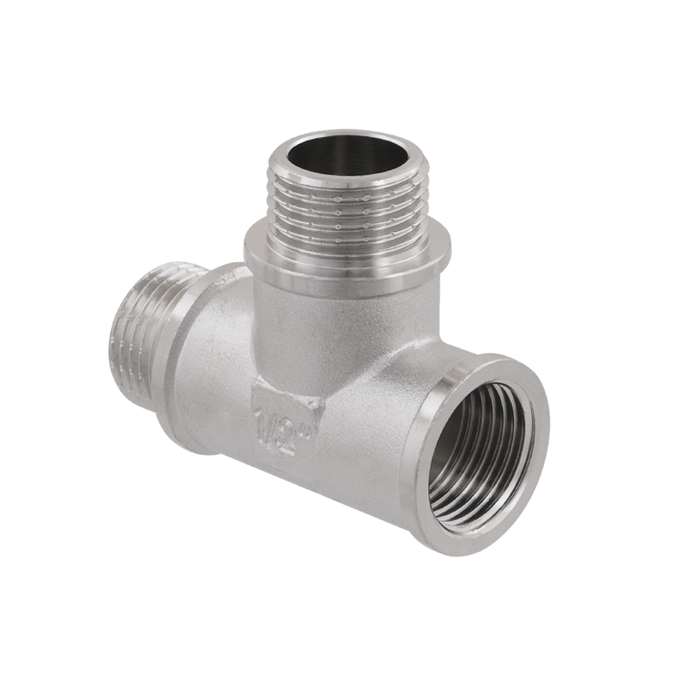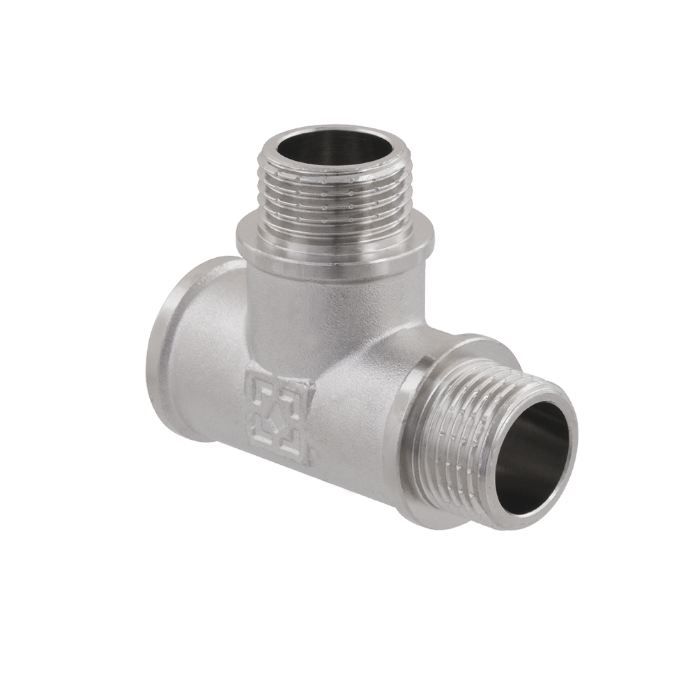 Резьбовой фитинг Raftec - латунный никелированный трехсторонний фитинг, равнопроходной.