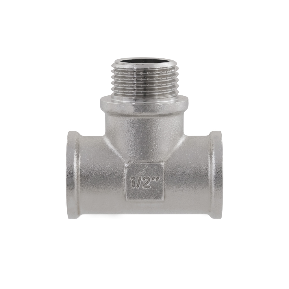 Резьбовой фитинг Raftec - латунный никелированный трехсторонний фитинг, равнопроходной.