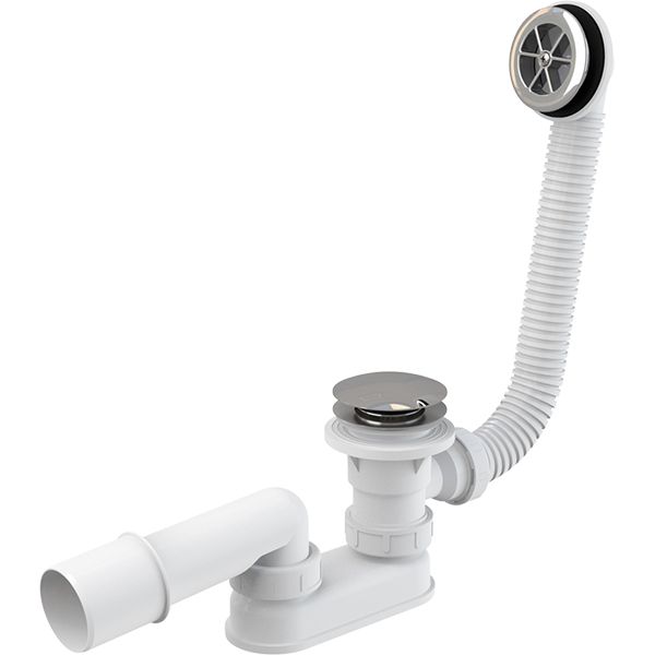 Сифон для душового піддона Alca Plast 'А503КМ' 50 мм з переливом 420мм виготовлений з термостійкого пластику, міцного за своєю структурою і стійкого до агресивних середовищ. Він простий в монтажі і не становить ніяких труднощів при прочищенні. Матеріал покрили шаром хрому, завдяки якому виріб має розкішний блиск і естетичний вигляд.