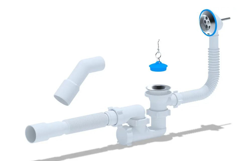 Сифон для ванни Ані-Пласт Е 256 1 1/2'х40 (розбірна горловина) з випуском і переливом з гнучкою трубою 40x50 призначений для установки з будь-якою сантехнічною арматурою. Завдяки наявності гнучкої відвідної труби, сифон дозволяє легко вирішити проблему відведення стічних вод в умовах обмеженого простору.
