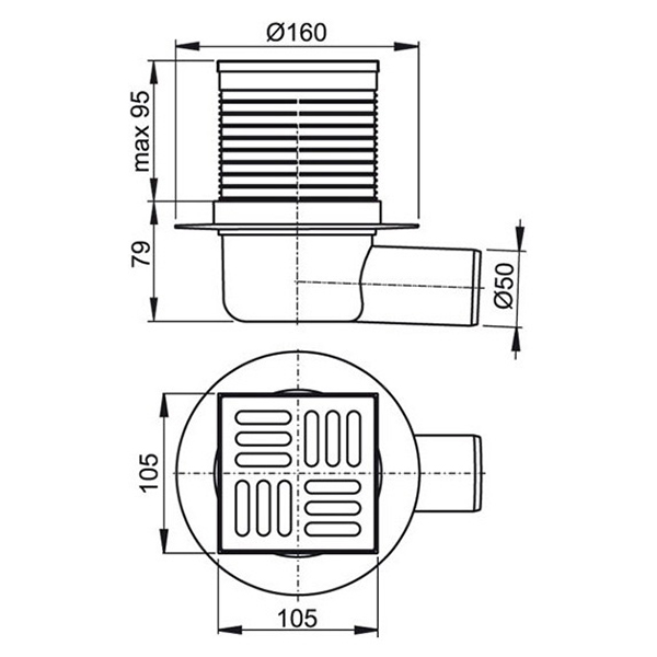Зливний трап з декоративними ґратами з нержавіючої сталі, використовується для відводу води в душових, басейнах, приміщеннях і т.д. Являє собою корпус з високоміцного і стійкого АБС пластику з гідрозатвором і зворотним клапаном, що ефективно запобігає проникненню запахів з каналізації.