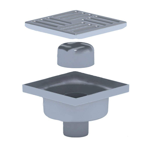 Зливний трап з декоративними гратами з нержавіючої сталі, використовується для відводу води в душових, басейнах, приміщеннях і т.д. Являє собою корпус з високоміцного і стійкого АБС пластика з гідрозатворів і зворотним клапаном, що ефективно запобігає проникненню запахів з каналізації.