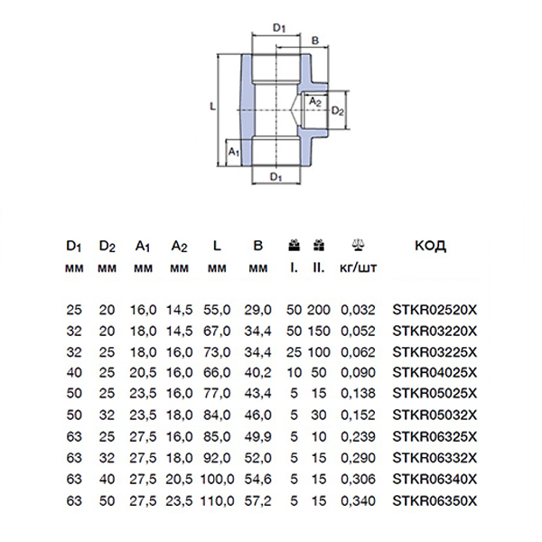 Трійник редукційний PPR Ekoplastik 63x50x63мм STKR06350X