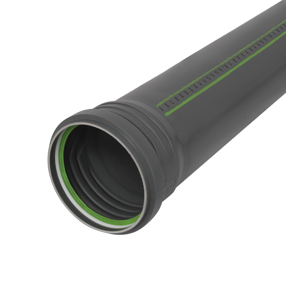 Особливість конструкції розтрубів надає труб та фітингів підвищену жорсткість і надійність. Завдяки високоякісній сировині має високу міцність, відмінну шумоізоляцію, тривалу вогнестійкість по DIN 4102 клас В1, а так само безпроблемну експлуатацію при високих температурах.