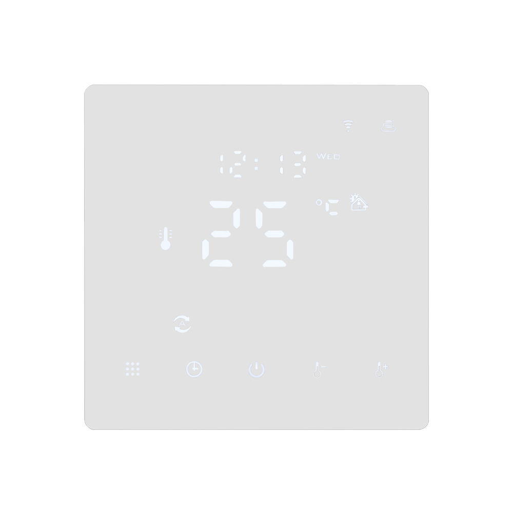 Бездротовий Wi-Fi терморегулятор використовується для безпровідного управління приладами. Він має вбудований датчик температури, що дозволяє точно вимірювати температуру в кімнаті і налаштовувати опалення відповідно до потреб користувача. Крім того, терморегулятор має інтерфейс Wi-Fi, що дозволяє дистанційно керувати ним через мобільний додаток Smartlife. Блок термостата потребує постійного джерела живлення 220В.
