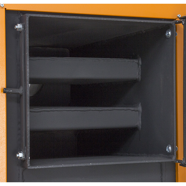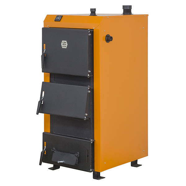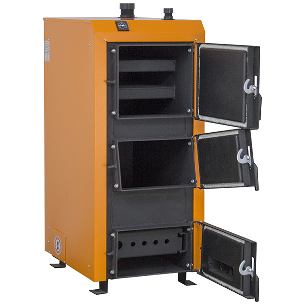 Твердопаливний котел серії UNIVERSAL - це сталевий твердопаливний котел з поличним теплообмінником та водонаповненими колосниковими ґратами. Котел працює на будь-якому типі твердого палива (вугілля, дрова, брикет, торф і т.д.) і завдяки своїй конструкції має високу ефективність (ККД 85%). Котел універсальний, оскільки процес подачі повітря на горіння може здійснюватися механічним регулюванням (роблячи процес енергонезалежним) або ж примусово за допомогою установки автоматики та турбіни. Якісне складання та товщина сталі корпусу теплообмінника – 4 мм дозволяють котлу прослужити тривалий термін. Котел має три-дверну конструкцію з розташованими під кутом завантажувальними дверцятами, що спрощує експлуатацію та чищення.