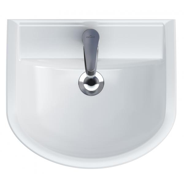 Умивальник Cersanit ARTECO 50 з отвором для змішувача і переливом, вилитий з сантехнічного фаянсу. Габаритні розміри 500х435 мм. Універсальність і лаконічність форм умивальника гармонує античним рішенням сучасних інтер'єрів. Європейський дух, досконалість і надійність цієї серії додасть вишуканості та прямоти вашій ванній кімнаті. Весь санфаянс має сертифікати якості і санітарно-гігієнічні висновки.