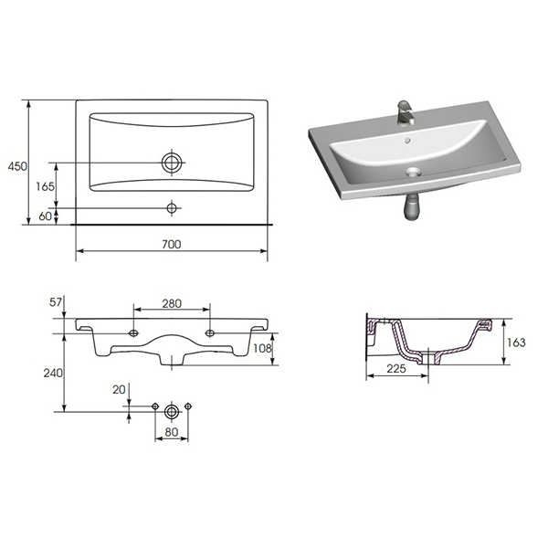 Меблевий умивальник Cersanit COMO 70 з переливом і отвором під змішувач, вилитий з сантехнічного фаянсу. Габаритні розміри 700х455 мм. Прямокутна форма дуже практична і безпечна, у своєму розпорядженні до установки абсолютно будь-якого змішувача. Умивальник гармонійно впишеться в декор Вашої ванної кімнати. Весь санфаянс має сертифікати якості і санітарно-гігієнічні висновки.