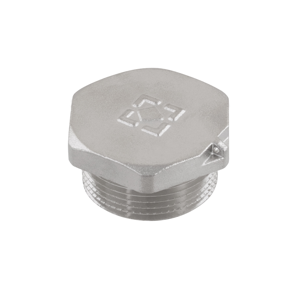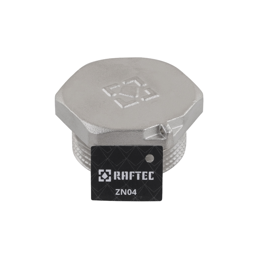 Різьбовий фітинг Raftec - заглушка, латунний нікельований фітинг. Корпус шестигранної форми, під гайковий ключ.