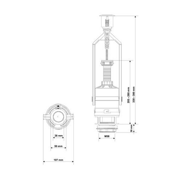 Зливний механізм виробництва KK Pol ZSB/210 обладнаний одинарною кнопкою. Економічна витрата води можна налаштувати використовуючи регулювання зливу, яка дозволить виставити необхідні параметри. Завдяки широкому діапазону регулювання по висоті дана модель підходить для змивних бочків різної висоти.