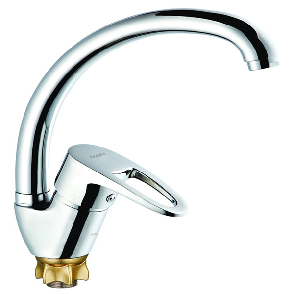 Змішувач марки G-Lauf серії 8G4-A180 використовується для кухонної мийки, має вигнутий поворотний вилив (гусак) 125 мм, аератор для економного використання води, одноважільне управління. Конструкція сантехнічного приладу - 'ялинка'.
