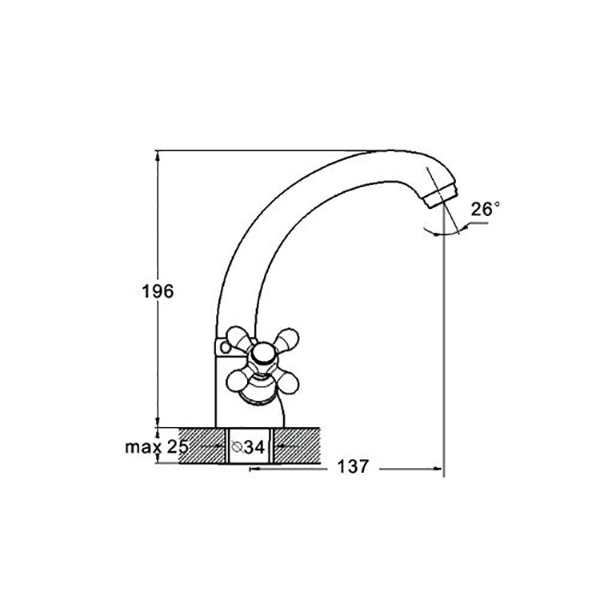 Монтується змішувач на умивальник з допомогою шпильки, такий спосіб кріплення дозволяє з легкістю прикрутити спершу шланги, а потім впустити їх зверху в отвір на мийці. Виконано в класичному кольорі хром, що виглядає дуже сучасно і практично.