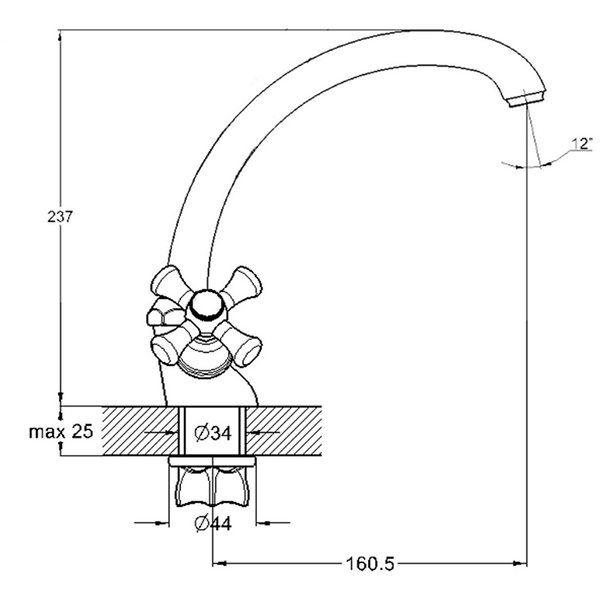 Змішувач марки G-Lauf серії QTZ4-B827 використовується для кухонної мийки, має вигнутий поворотний вилив (гусак) 160 мм, двовентильне управління. Конструкція сантехнічного приладу - 'ялинка'.
