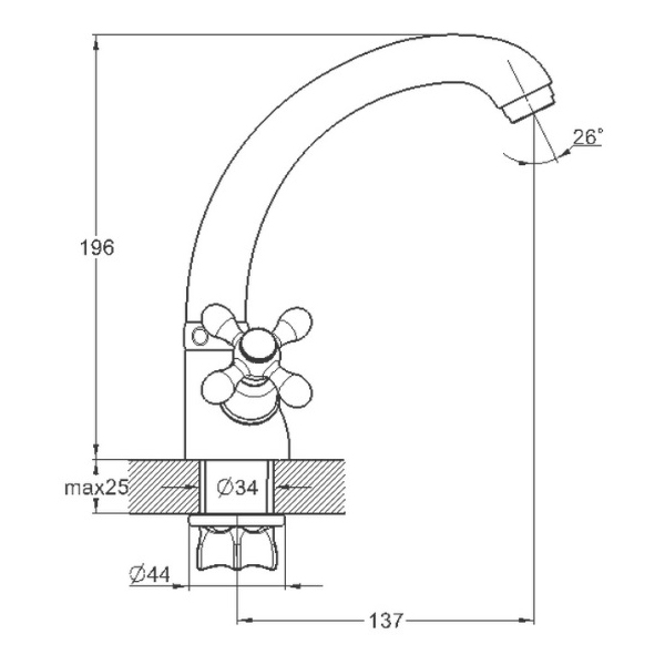 Монтується змішувач на умивальник з допомогою гайки, така короноподібна форма дозволяє з легкістю прикрутити кріплення пальцями. Виконано в класичному кольорі хром, що виглядає дуже сучасно і практично.